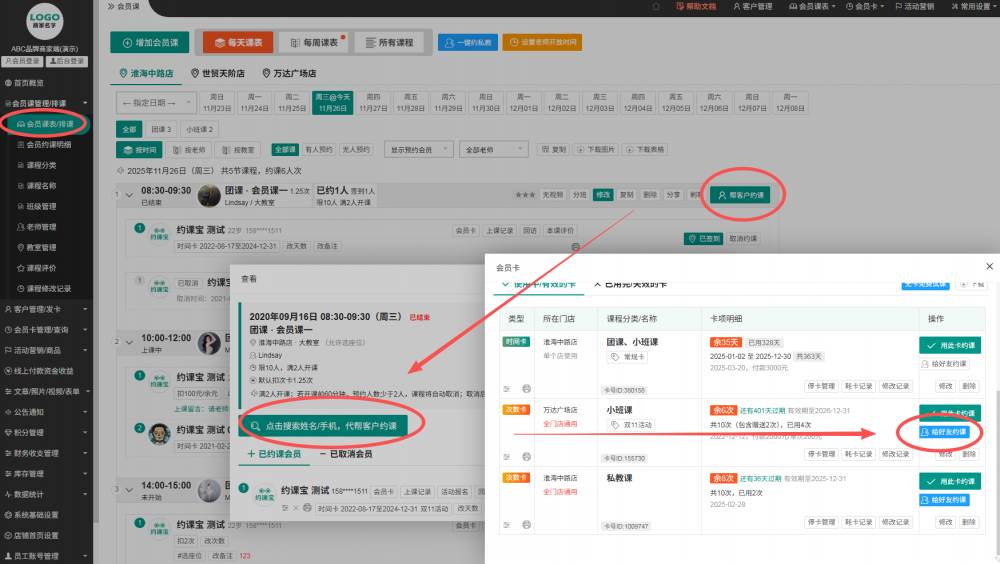 说明:“帮好友约课”只能使用会员自己的次数卡或储值卡,不能用时间卡。