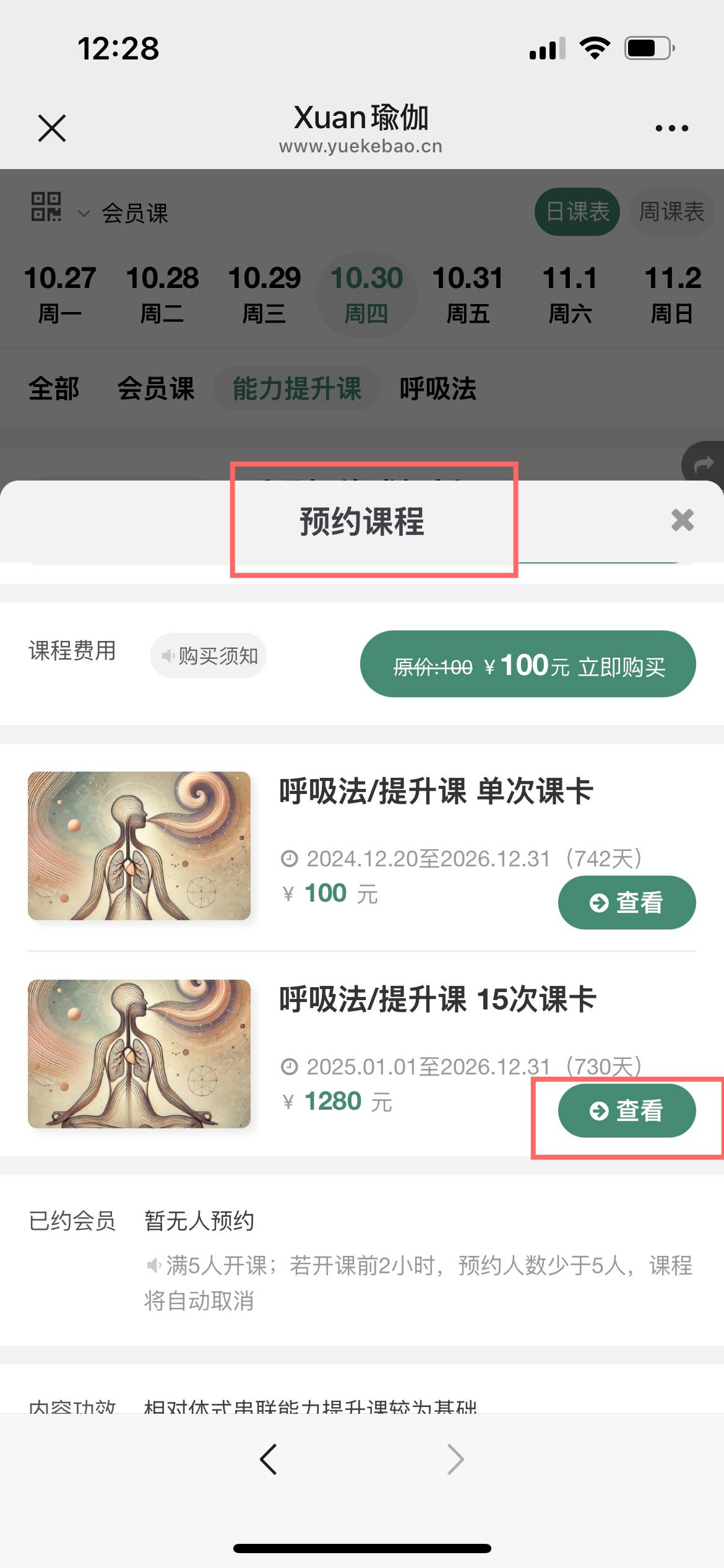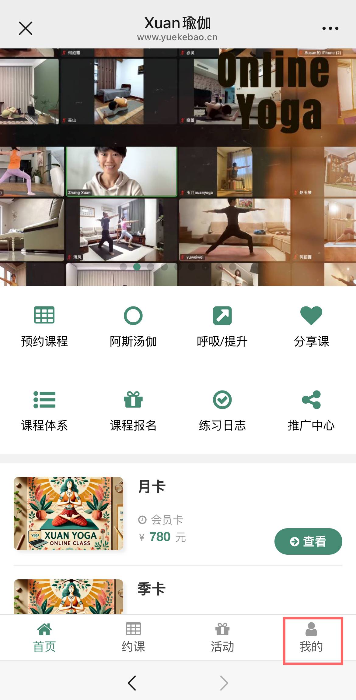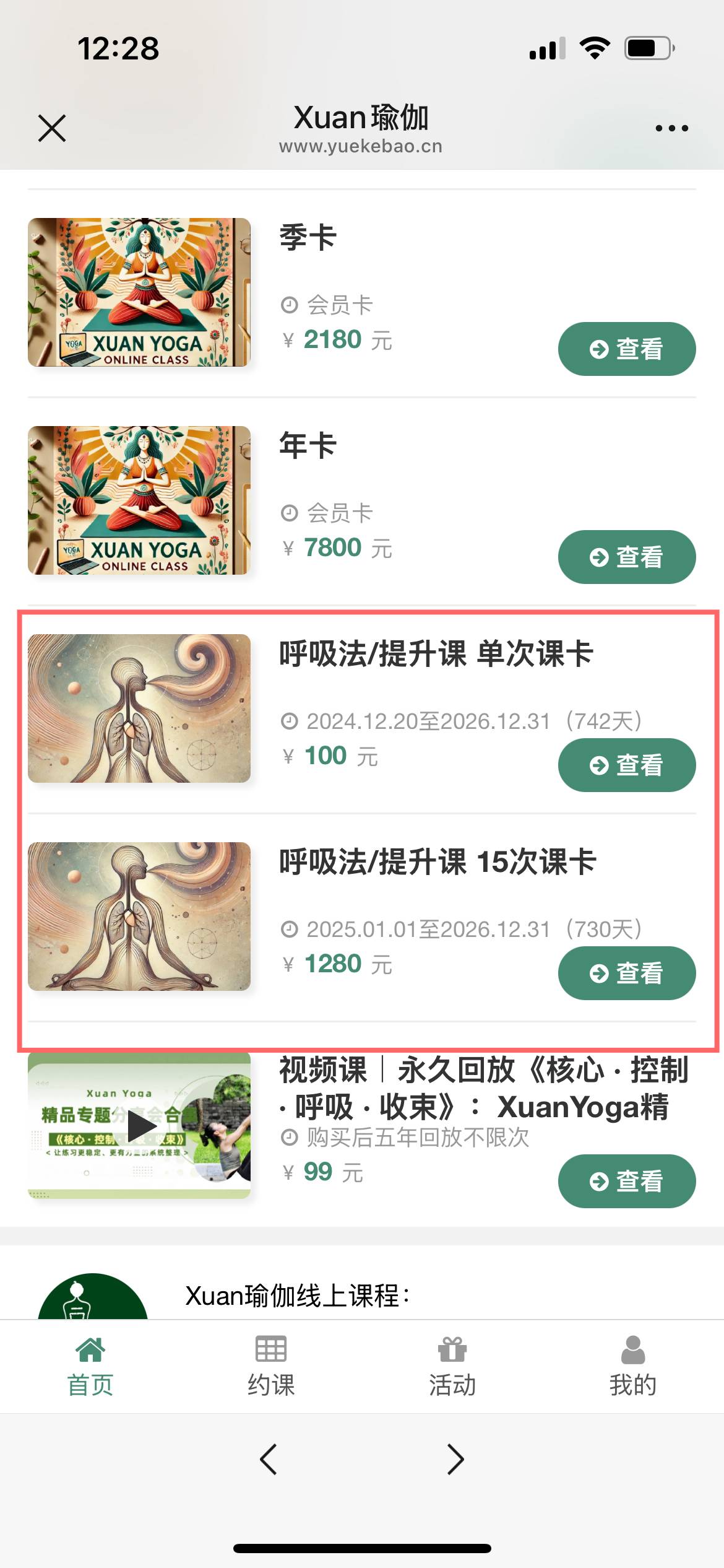 在首页活动点击“查看” 或者预约课程中点击“查看”