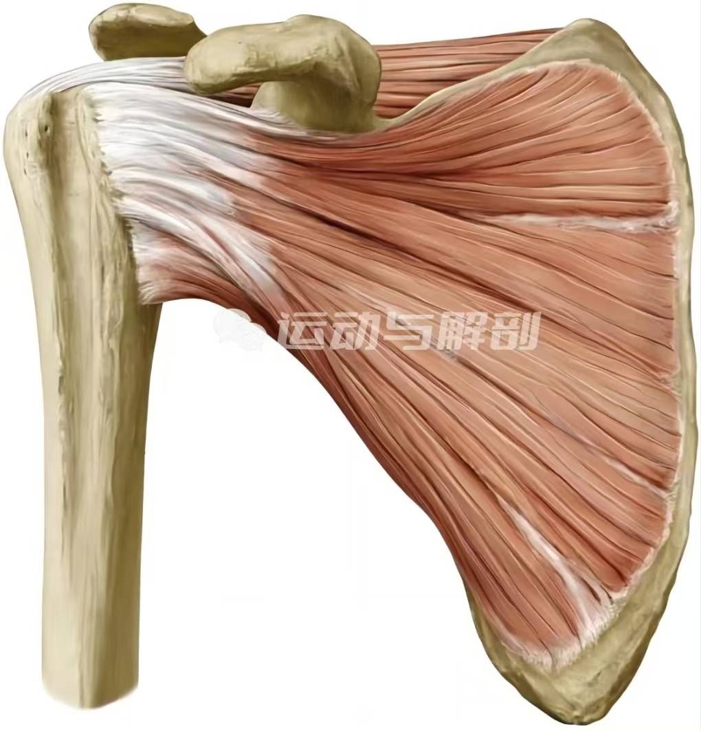肌肉位置: 位于肩胛骨腹侧面(前侧),覆盖肩胛骨大部分前表面,是肩袖肌群中唯一位于前方的肌肉