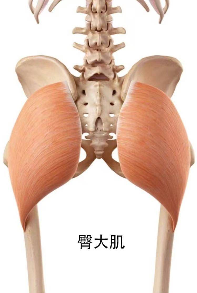 臀大肌连接骶骨背侧外表面、髂骨后部、胸腰筋膜、髂胫束、股骨臀肌粗隆。臀大肌是髋关节主要伸肌,是三块臀肌中最大、最有力、最浅表的一块肌肉。