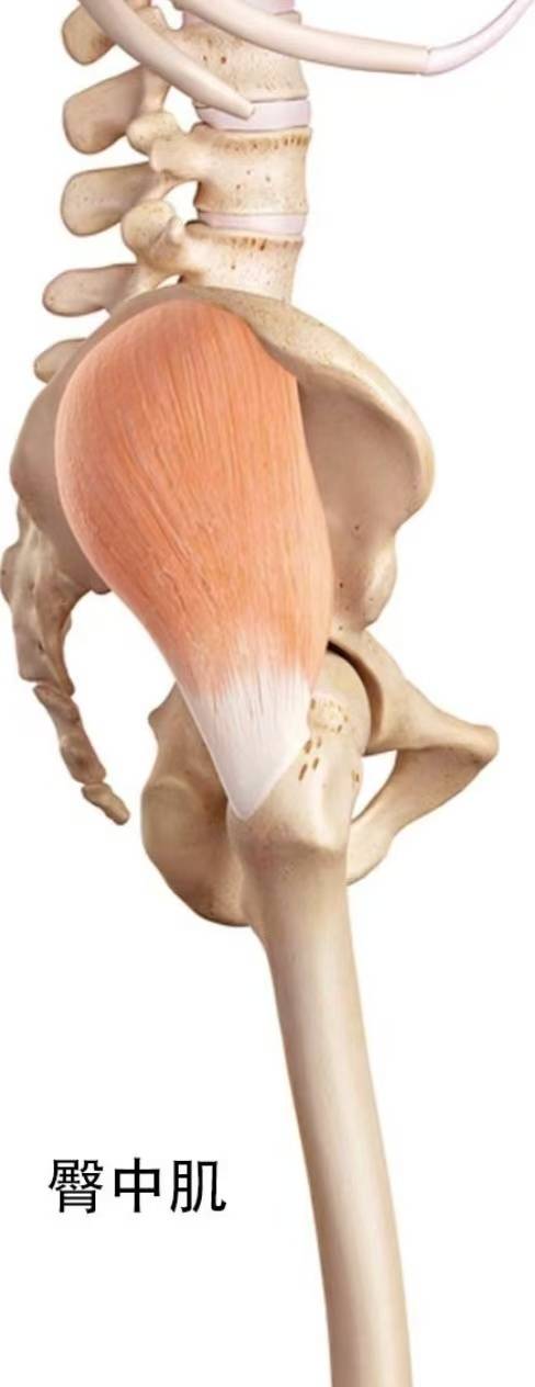 这两块肌肉是主要的髋外展肌,使股骨远离身体中线,臀中肌是最大的髋外展肌,约占髋外展肌总横截面积的60%,臀小肌约占20%。
