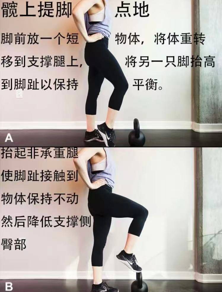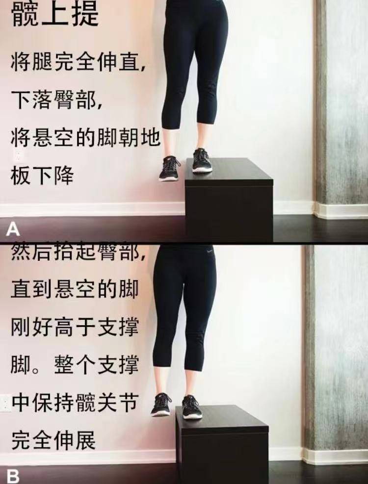 髋上提、髋上提脚点地、髋上提腿摆动能使臀中肌和臀小肌所有部位产生高水平的肌肉激活。