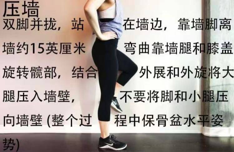 同样,压墙能够引发臀中肌后部纤维高水平激活,这是因臀外侧肌在单腿站立时要稳定下肢。
