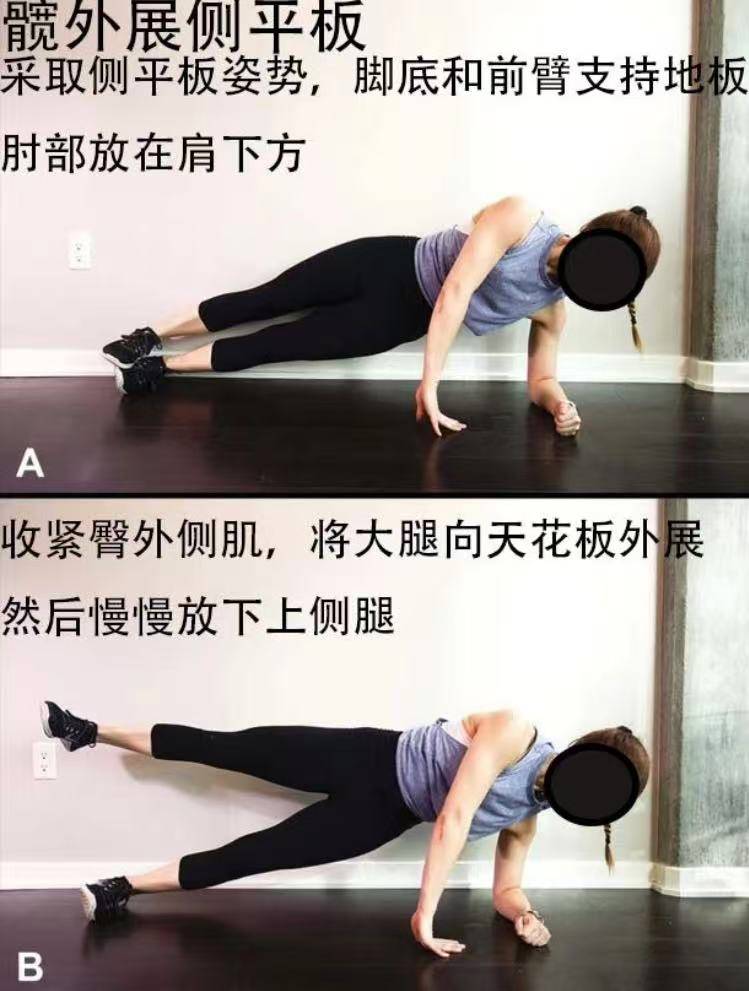 更高水平的臀中肌激活发生在单腿桥式、蚌式、髋外展侧平板、侧卧髋外展,侧卧髋外展可额外激活臀小肌后部纤维。