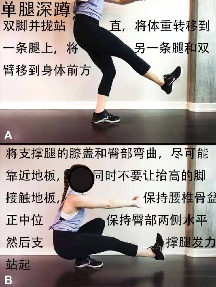 单腿深蹲和滑冰深蹲都是高阶动作,会对股四头肌施加高负荷,建议跑者在正确掌握双侧深蹲后,再进阶练习这些动作,先使用较小的动作活动范围,然后再增加单侧深蹲深度。