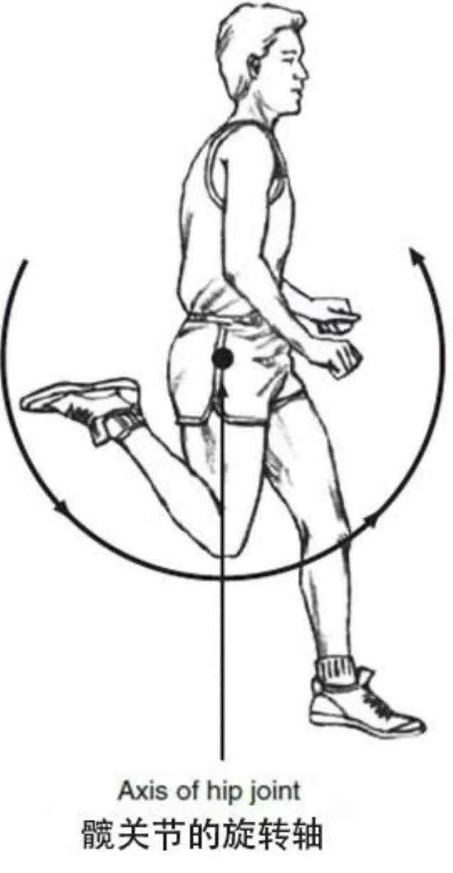 千万不要小看质量与旋转轴距离对速度的影响。当距离增加至原来的2倍,例如小腿向后折叠时脚距离臀部较远,这时腿部摆动的转动惯量就会变成原来的4倍,大大增加了腿向前摆动的阻力,也就减慢了腿向前摆动的速度。