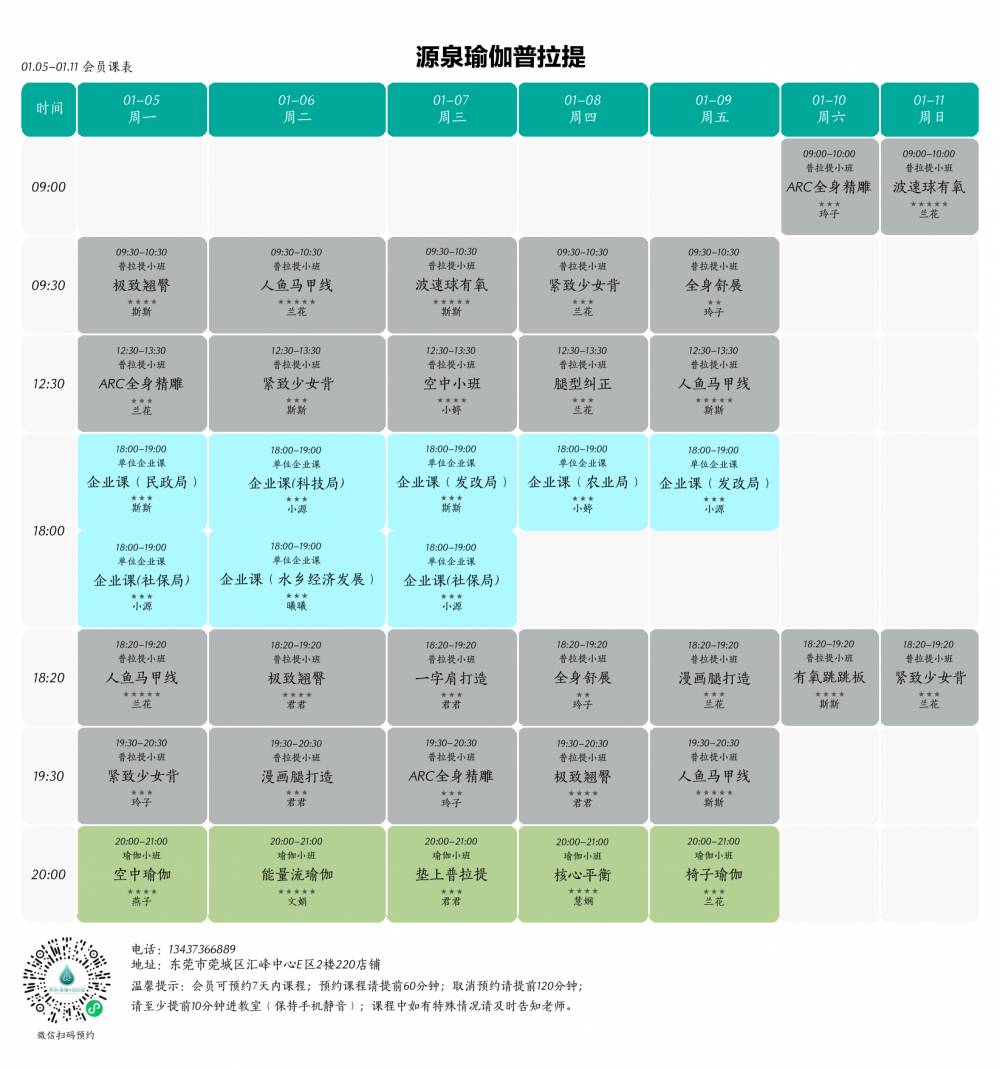 O 课程均有人数限制,请务必提前预约;