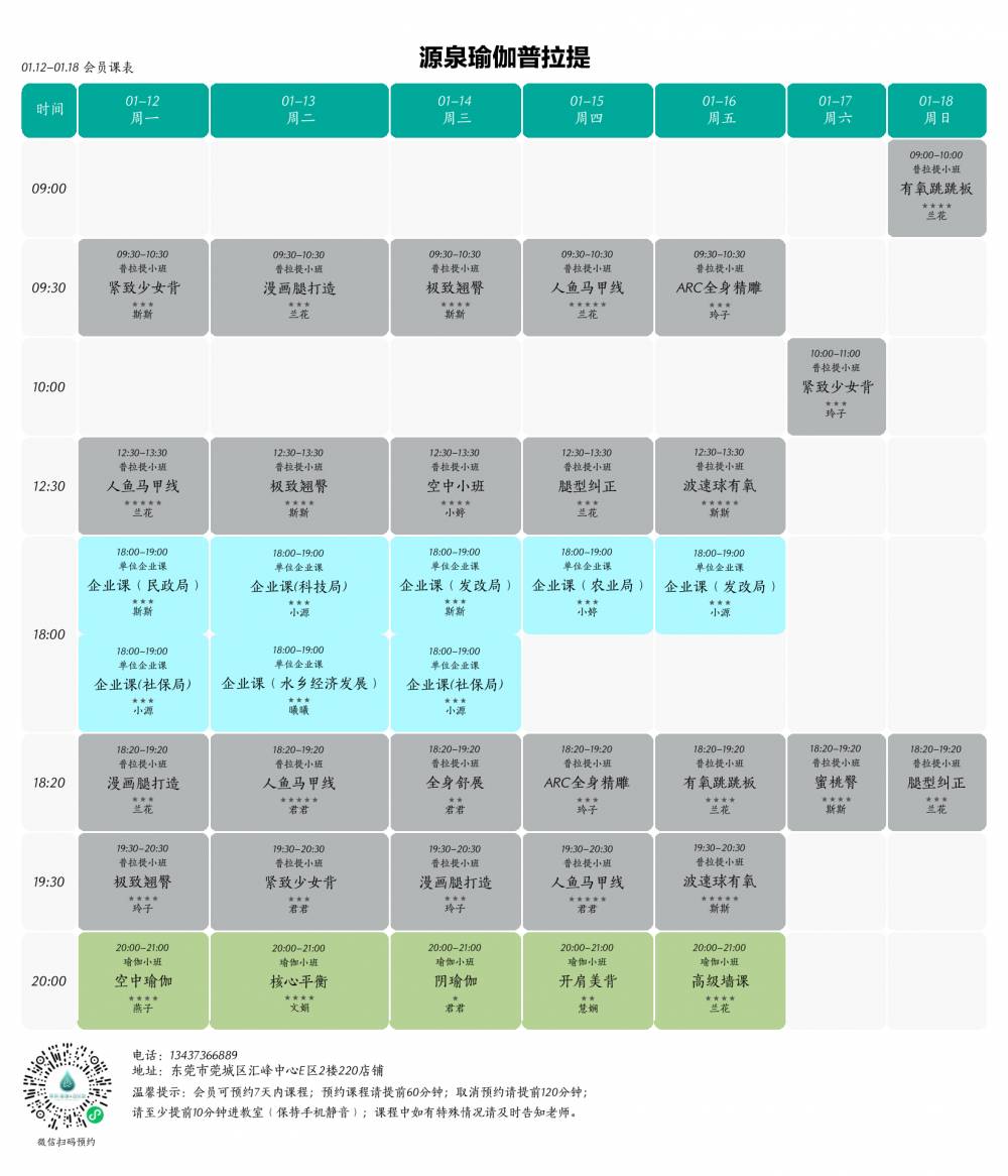 O 课程均有人数限制,请务必提前预约;