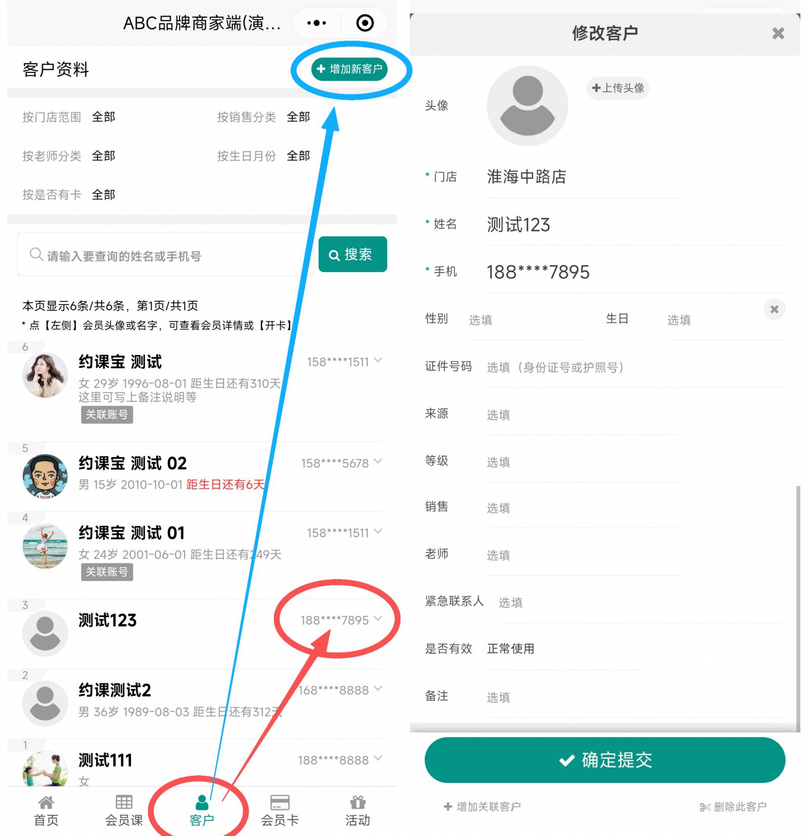 ▼[手机后台]录入会员和开卡,可参考如下截图